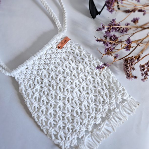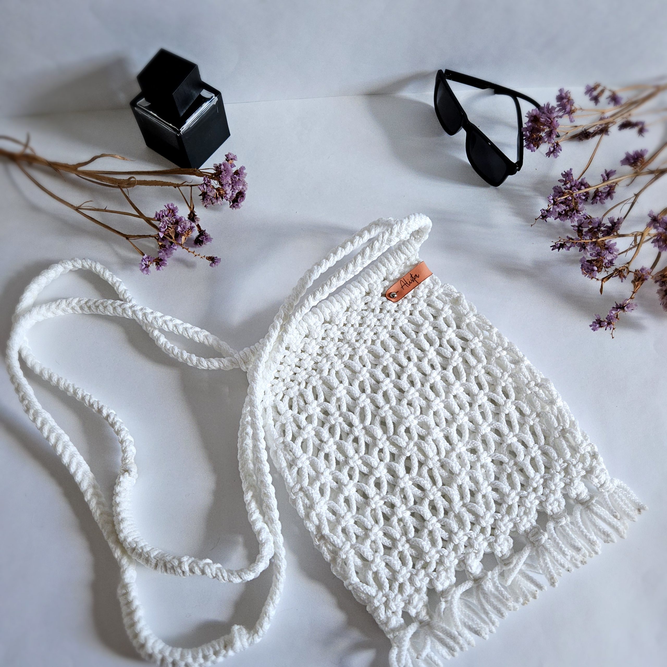 Сумка через плечо «Кросс-боди «BOHO» Белый кристалл из полиэфирного шнура